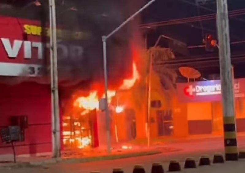 Populares capturaram em vídeo o momento de um incêndio que ocorreu noite de ontem (3) no Supermercado Vitória, localizado no município de Barro Alto (GO).